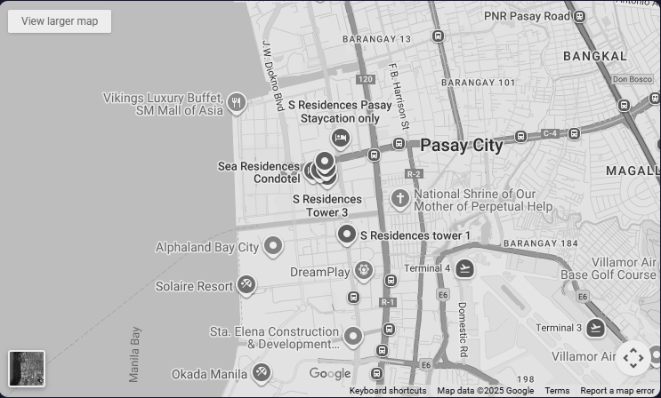 Situated within the MOA Complex CBD and the Entertainment City, living at S Residences gives you easy access to the best restaurants and shops through the SM Mall of Asia. Dive into thrills at the world-renowned City of Dreams Manila. Hop on a train with the MRT and LRT stations nearby and get instant access to any point in the city.
